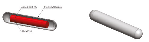 The I-125 source consists of a laser-welded titanium capsule containing iodine-125 adsorbed on a silver rod that acts as an x-ray detectable marker.